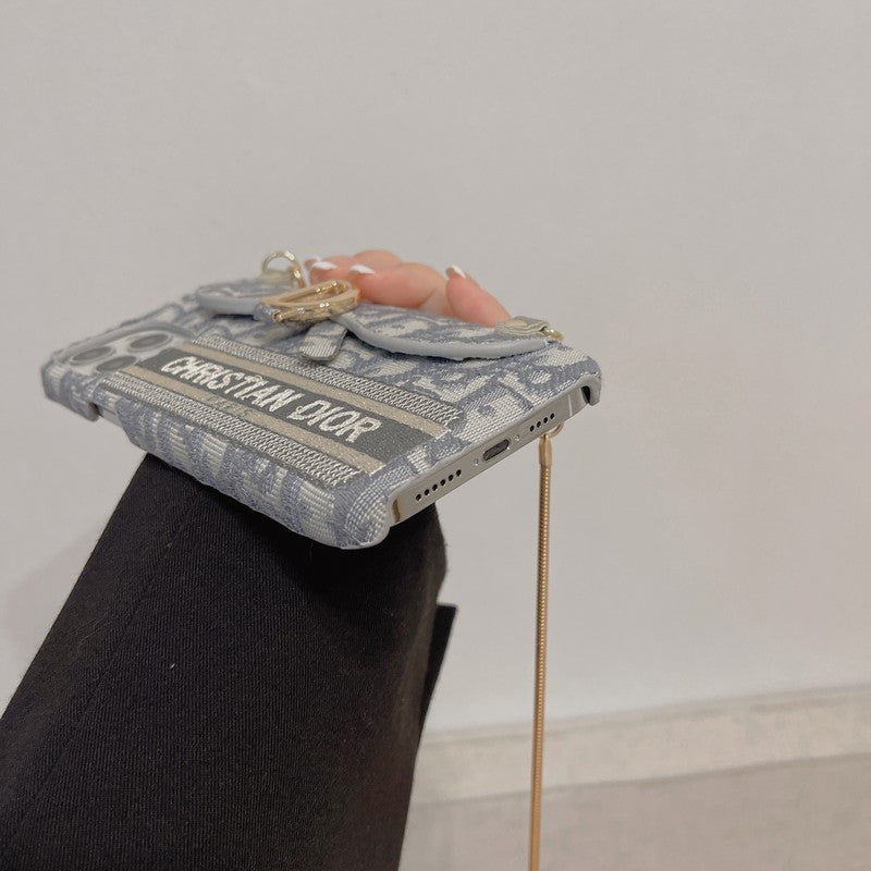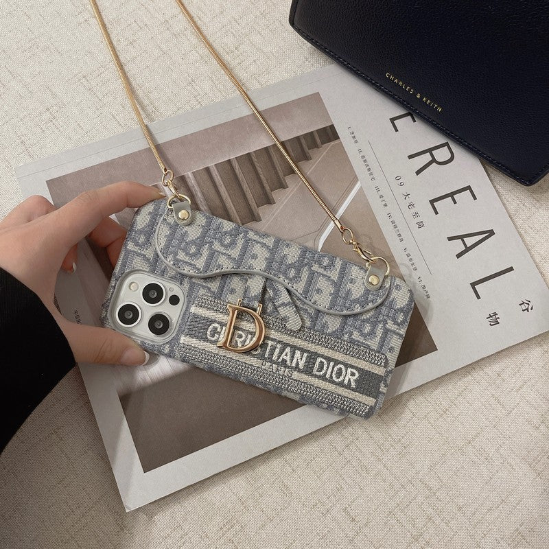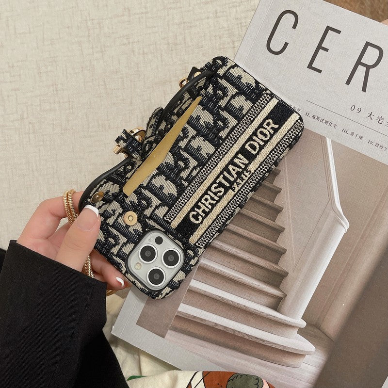 CD fekete és szürke szövet kártyatáska Crossbody iPhone tok